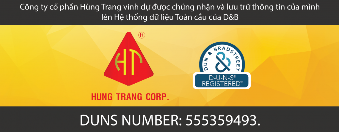 CÔNG TY CỔ PHẦN HÙNG TRANG VINH DỰ ĐƯỢC CHỨNG NHẬN VÀ LƯU TRỮ THÔNG TIN CỦA MÌNH LÊN HỆ THỐNG DỮ LIỆU TOÀN CẦU CỦA D&B.